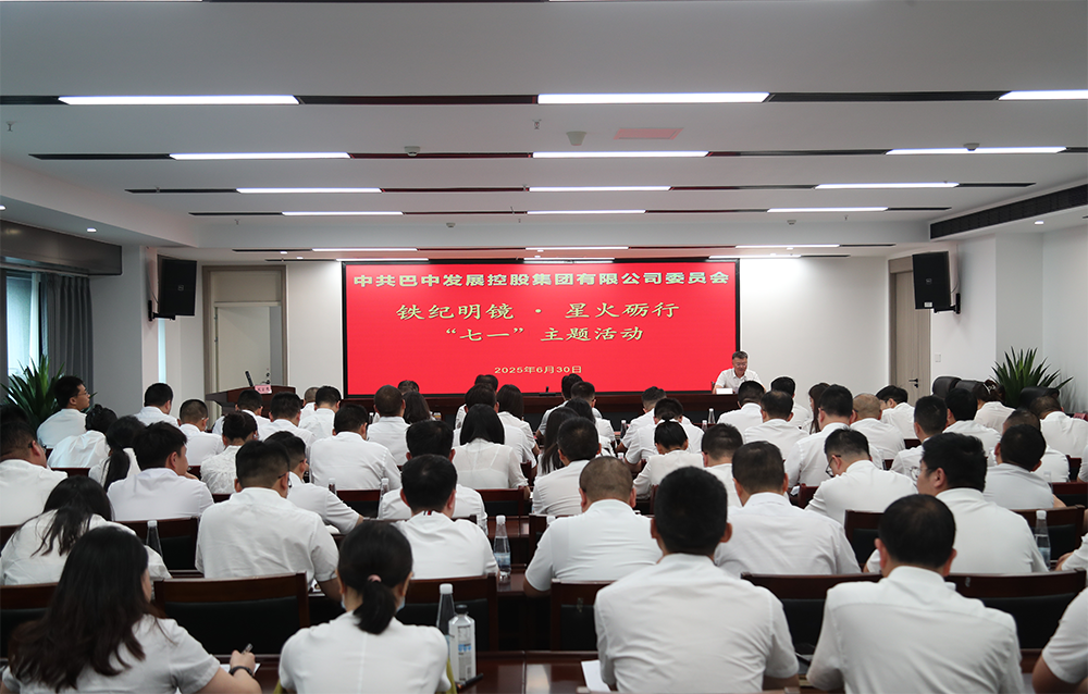 6月30日下午,中共巴中發(fā)展控股集團(tuán)有限公司委員會(huì)舉辦“鐵紀(jì)明鏡·星火礪行”主題活動(dòng),集團(tuán)全體黨員、預(yù)備黨員及入黨積極分子等共80余人參加,黨委副書(shū)記、總經(jīng)理沈鵬主持會(huì)議,黨委書(shū)記、董事長(zhǎng)許大政出席活動(dòng)并講話。