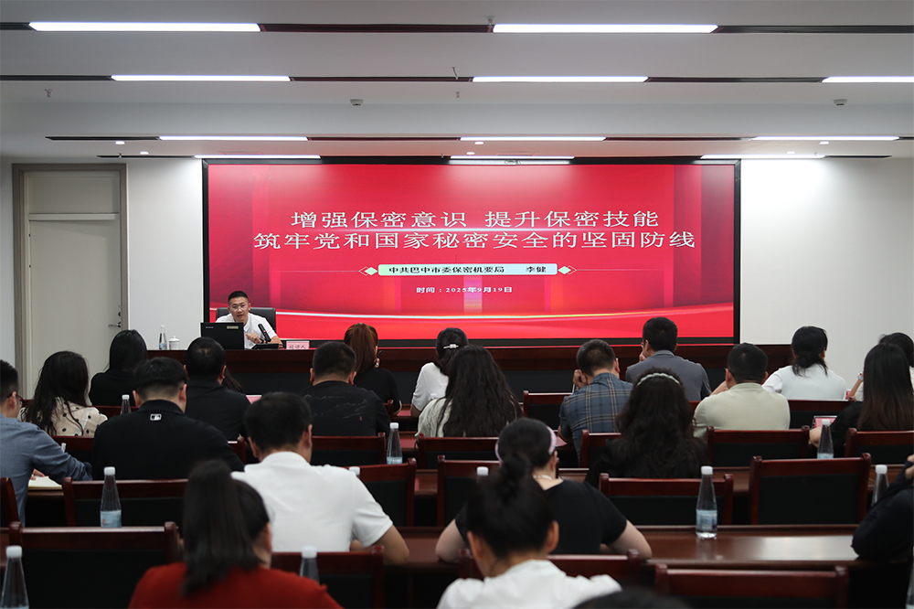 為進(jìn)一步提高國(guó)企干部職工的保密素養(yǎng)和能力,9月19日,巴中發(fā)展集團(tuán)開(kāi)展保密工作專題培訓(xùn),市委保密機(jī)要局科技測(cè)評(píng)中心主任李健應(yīng)邀授課,集團(tuán)本部全體職工、下屬企業(yè)分管領(lǐng)導(dǎo)及相關(guān)部門員工共60余人參加培訓(xùn)。