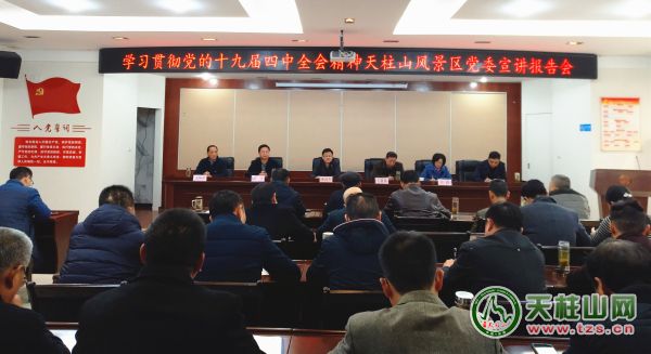 為深入學(xué)習(xí)貫徹黨的十九屆四中全會(huì)精神,12月13日下午,天柱山風(fēng)景區(qū)黨委舉行學(xué)習(xí)貫徹黨的十九屆四中全會(huì)精神天柱山風(fēng)景區(qū)黨委宣講報(bào)告會(huì)。市委常委、天管會(huì)副主任涂高生作宣講報(bào)告,風(fēng)景區(qū)紀(jì)委書記江霞主持報(bào)告會(huì),管委會(huì)領(lǐng)導(dǎo)班子成員,管委會(huì)機(jī)關(guān)全體干部職工,度假區(qū)管委會(huì)機(jī)關(guān)全體干部職工,各黨支部主要負(fù)責(zé)人,旅游公司班子成員、公司下屬二級機(jī)構(gòu)及經(jīng)營單位主要負(fù)責(zé)人,近五年內(nèi)退休的老同志,已退休的副縣級老同志參加會(huì)議。