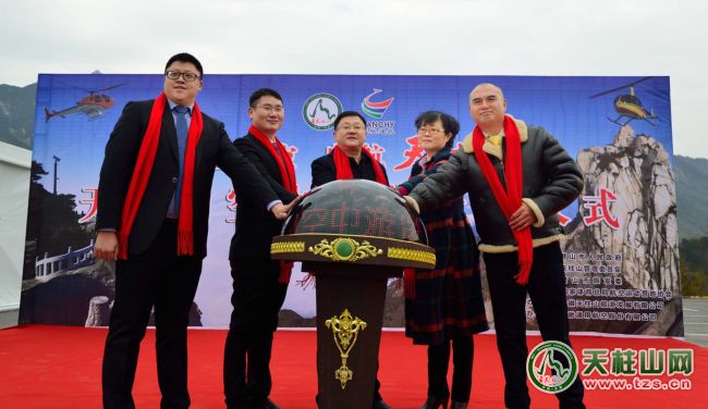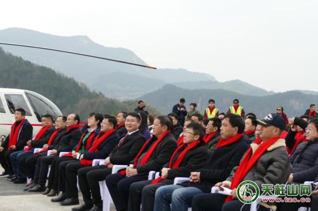 2019年1月25日上午,“空中看天柱”天柱山低空飛行旅游開航儀式在茶莊P1停車場(漢馳航空飛行基地)舉辦。儀式由潛山市人民政府、天柱山管理委員會、潛山市旅發(fā)委和國家體育總局航空運(yùn)動(dòng)營地指導(dǎo),安徽天柱山旅游發(fā)展有限公司主辦,漢弛通用航空股份有限公司承辦。潛山市委常委、天柱山管委會主任涂高生,潛山人民政府副市長蔡婷婷,國家體育總局航空運(yùn)動(dòng)營地標(biāo)準(zhǔn)修訂專家委會委員何馳,漢馳通用航空股份有限公司董事長涂楓,漢馳通用航空航空俱東部總經(jīng)理查雄風(fēng)等嘉賓共同啟動(dòng)開航儀式。市文化委、市旅發(fā)委、招商局、天柱山鎮(zhèn)、天管會等單位領(lǐng)導(dǎo)和主要負(fù)責(zé)人;項(xiàng)目建設(shè)合作運(yùn)營機(jī)構(gòu)、新聞媒體記者和現(xiàn)場旅客等近200人共同參與開航儀式和首航試飛活動(dòng)。