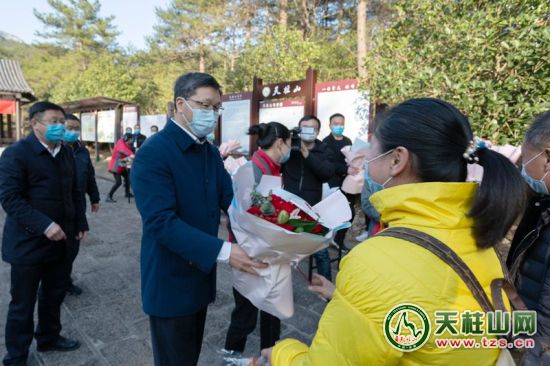 3月5日,在安慶市委、市政府的直接關(guān)心下,安慶市首批33名抗疫一線醫(yī)護(hù)人員來天柱山休養(yǎng)。我市以貴賓禮遇迎接戰(zhàn)“疫”一線的醫(yī)護(hù)人員,當(dāng)載著醫(yī)護(hù)人員的兩輛大巴車一下天柱山高速,警車開道一路護(hù)送到療養(yǎng)駐地。市長、天柱山管委會主任梅耐雪,市委常委、天柱山管委會副主任涂高生,副市長蔡婷婷在駐地為每位醫(yī)護(hù)人員送上鮮花,向新時代最可愛的人致敬。