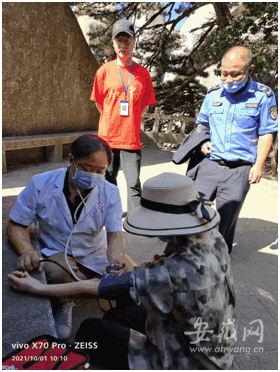 在休憩過程中,李女士低血糖犯了,倍感難受。天柱山工作人員張銳發(fā)現(xiàn)她狀況不對,上前溫馨詢問并熱情帶領(lǐng)她找到景區(qū)醫(yī)療人員,測量血壓,喝了一支葡萄糖。李女士的低血糖得到及時補(bǔ)充,休息一段時間后,精神緩和,體力恢復(fù)。在張銳的陪伴鼓勵下,李女士堅持攀登到天柱山天池峰之巔,親自拍下了雄偉神奇的天柱山主峰影像。
