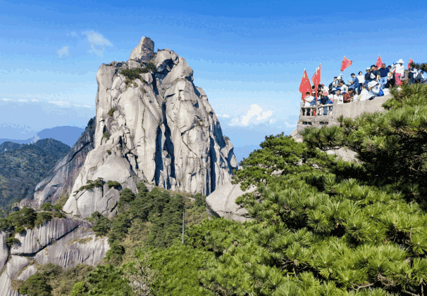 為進(jìn)一步營造喜慶祥和的節(jié)日氛圍,天柱山景區(qū)還積極開展各類活動。其中,“立天柱之巔 燃愛國之情”活動以唱紅歌迎國慶的形式,組織72名青年手拿紅旗,在天柱山之巔,用嘹亮的歌聲為祖國慶生。此外,經(jīng)典的黃梅戲表演,讓現(xiàn)場觀眾感受到黃梅戲文化的無窮魅力。