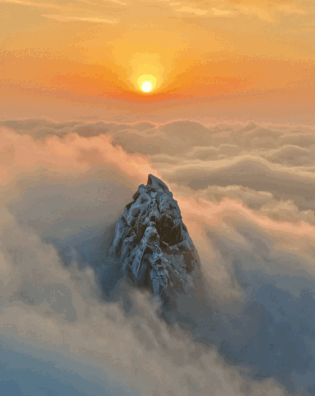 2026年1月1日17時,雪后的天柱山迎來“日照金山”美景 ? ?楊賢林/ 攝